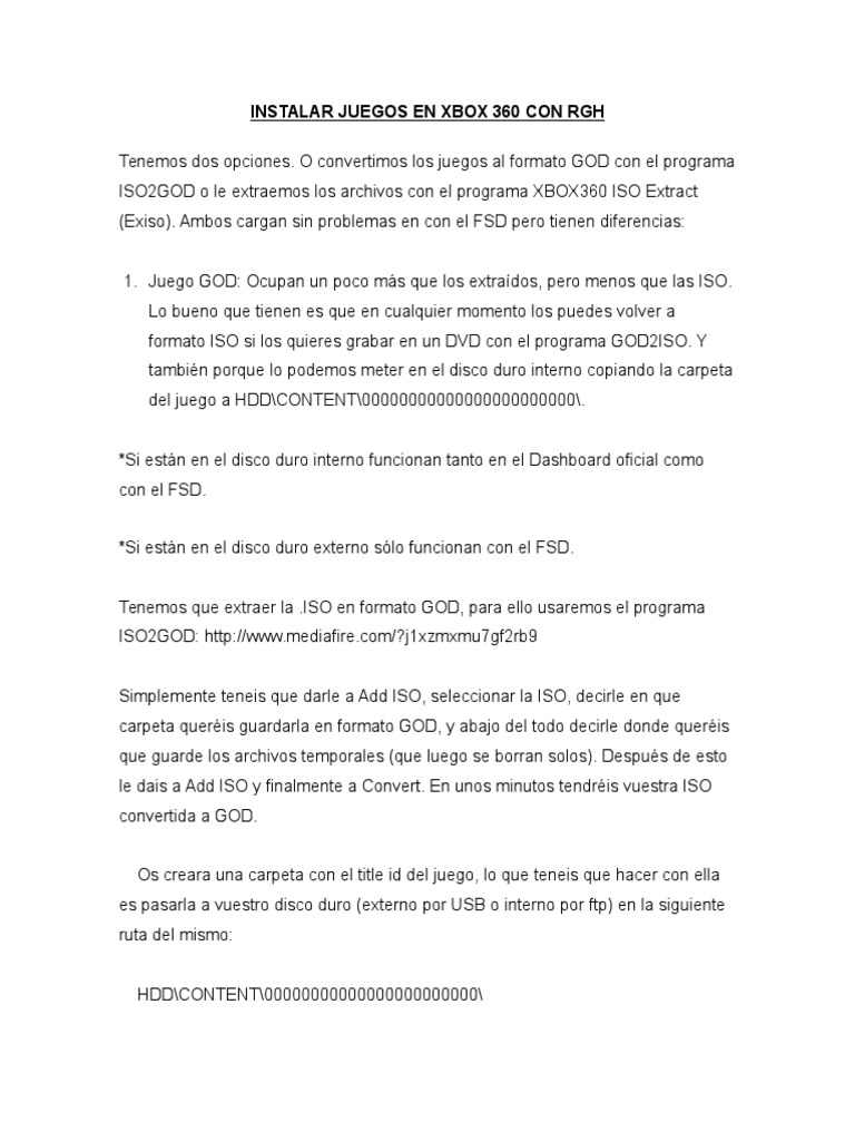 Que yo sepa (tampoco es que sea un gran experto) hay 3 formas de piratear la 360 Descarga juegos para tu xbox 360 totalmente gratis!!! Atualizar do xbox 360 para xbox one. Mtodo 2 algunos juegos han cambiado el lugar en que se almacena el update, tomare como ejemplo el update para el juego de assassins creed la hermandad. Metemos el usb en el xbox360 metemos el juego y listo tendremos nuestro juego con las ultimas actualizaciones. ¿buscas información, novedades o si merece la pena comprar algún título en concreto? Último comentario hace 4 meses. In terms of configuration, xbox 360 is equipped with modern technologies that make the device's handling extremely impressive. In addition to the powerful apparatus, the indispensable. Aquí encontrarás el listado más completo de juegos para xbox 360. En juegos360rgh encontrarás los mejores juegos de xbox 360 rgh, totalmente gratis en mediafire, con mucha facilidad de descarga. Sólo tienes que descargar see more of juegos xbox 360 full iso & rgh on facebook. Hola :d bienvenid@ a esta sección de videotutoriales para xbox 360 me esfuerzo mucho para explicar lo mejor posible, y así dar un mayor entendimiento al.